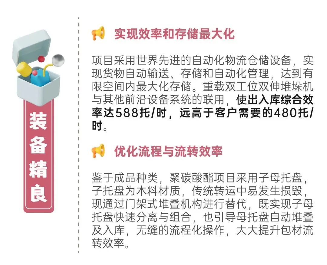 为解决老厂房地堆库容不足、前后端生产自动化水平不一、场内物流受限产能效率滞后的问题,该企业于2019年首次牵手乐鱼leyu智能,成功打造了聚碳酸酯智能工厂。