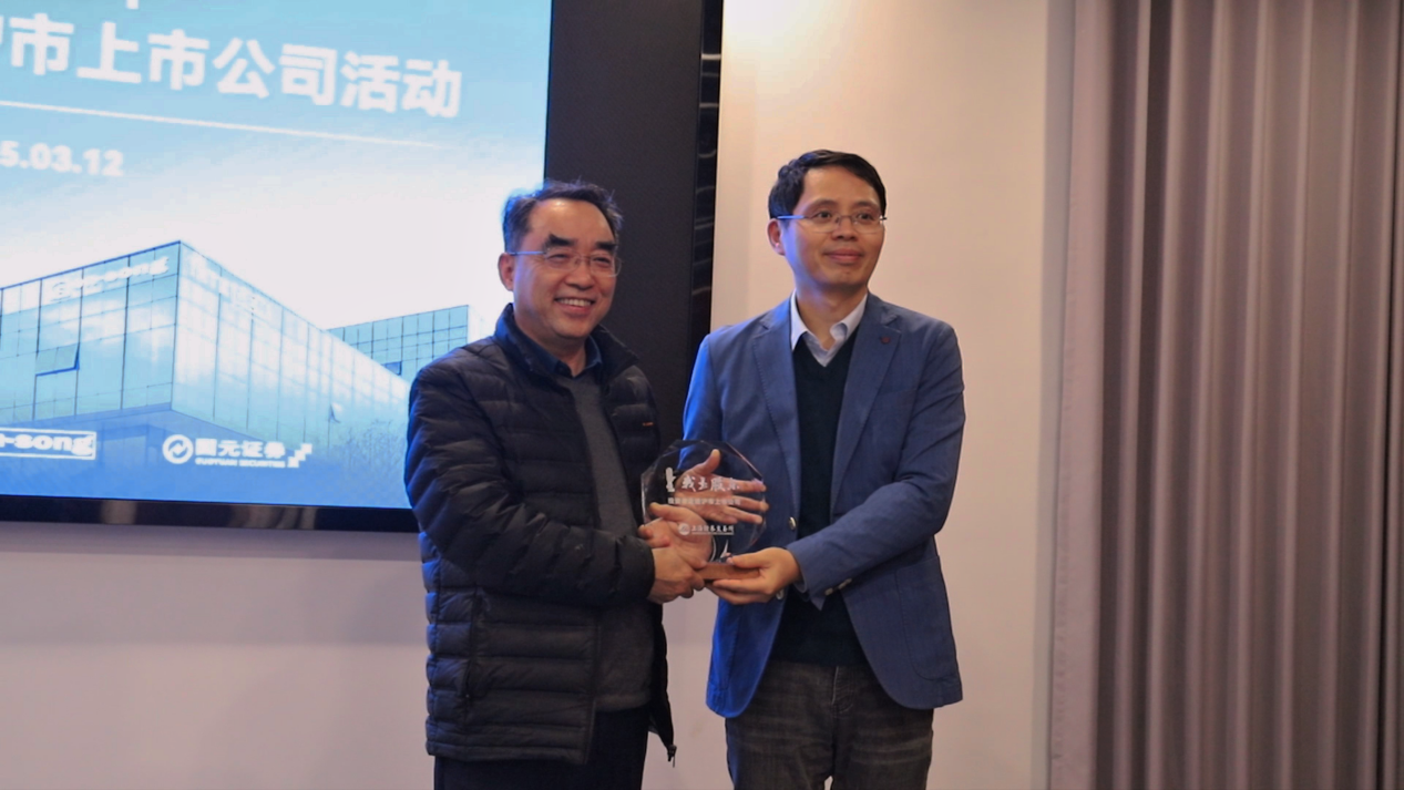在随后的座谈环节,乐鱼leyu智能董事长姚志坚先生为活动致欢迎辞,他表示,投资者是企业最宝贵的同行者,资本市场的信任需要持续用透明与价值来守护,公司会加强与投资者之间的透明度和沟通。期间,上交所投服部代表向乐鱼leyu智能赠送“我是股东”水晶纪念碑。
